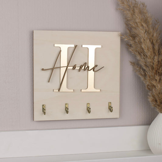 Schlüsselbrett mit 4 Haken gold Buchstabe und deinem Wunschtext