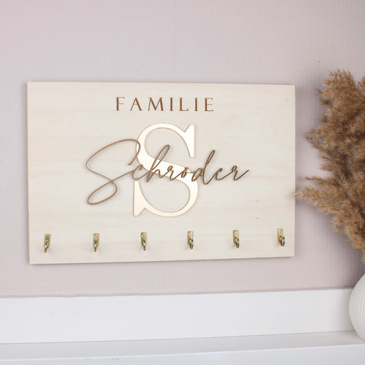Schlüsselbrett mit 6 Haken gold Buchstabe und deinem Wunschtext