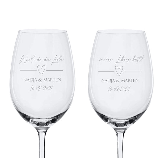 Weinglas Set Weil, du die Liebe meines Lebens bist - mit Wunschtext
