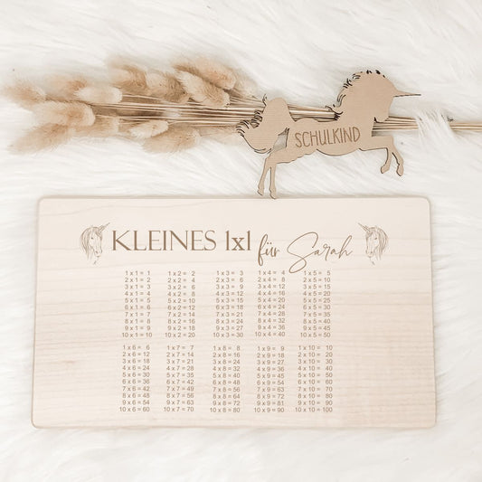 Frühstücksbrett Holz - Kleines 1x1 mit Einhorn und Wunschgravur