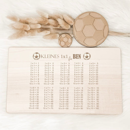 Frühstücksbrett Holz - Kleines 1x1 mit Fußball und Wunschgravur