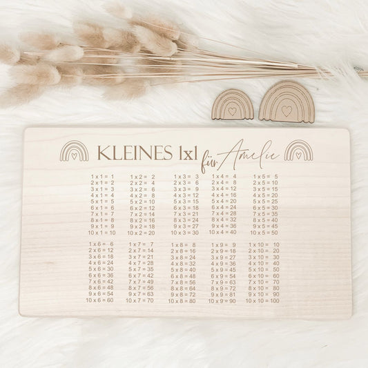 Frühstücksbrett Holz - Kleines 1x1 mit Regenbogen und Wunschgravur