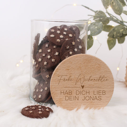 Keksglas 880ml mit Holzdeckel - mit Herz und deiner WUNSCHGRAVUR