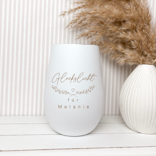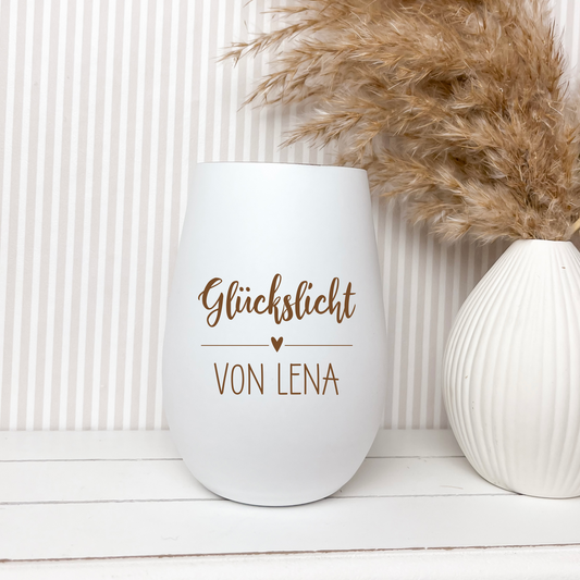 Windlicht Schön, dass es dich gibt mit Wunschtext