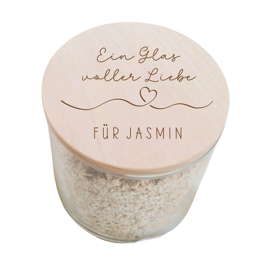 Vorratsglas 530ml mit Holzdeckel - Ein Glas voller Liebe und dein Wunschtext