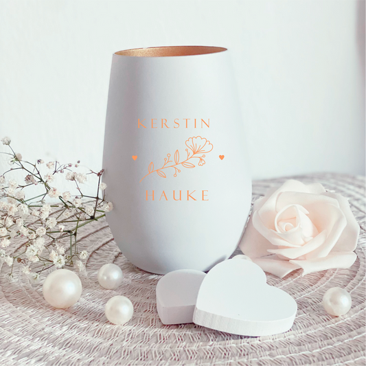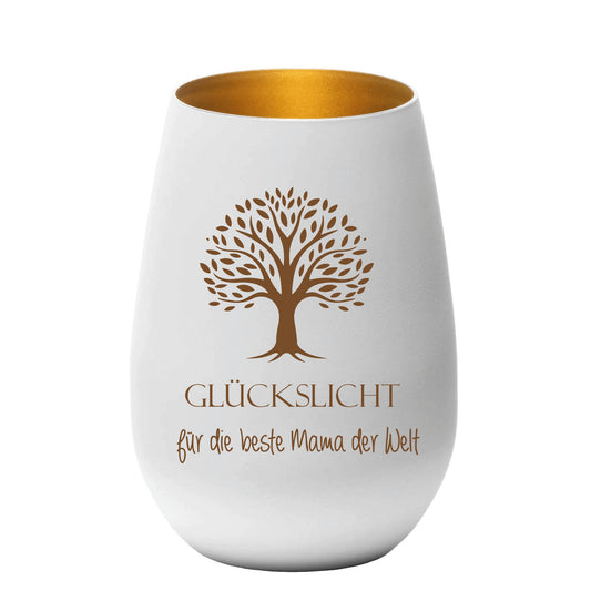 Windlicht weiß gold Lebensbaum mit deinem Wunschtext