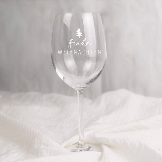 Weinglas Frohe Weihnachten Tannenbaum mit Wunschtext