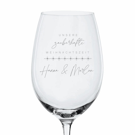 Weinglas Unsere zauberhafte Weihnachtszeit mit Wunschtext