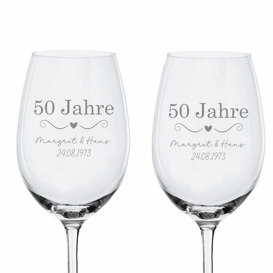 Weinglas Set goldene Hochzeit 50 Jahre mit Wunschtext