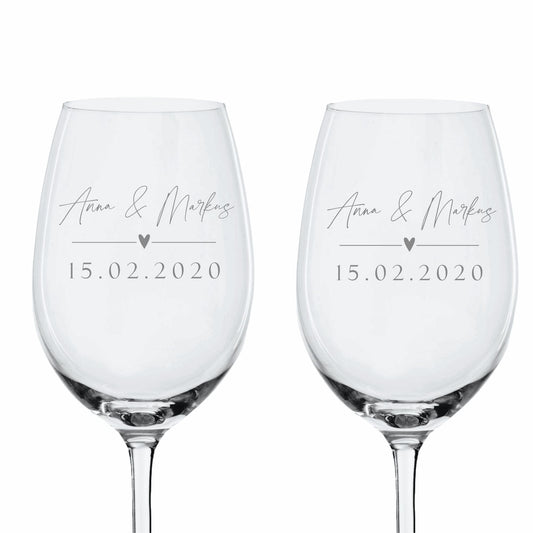 Weinglas Set mit Herzchen und Wunschtext