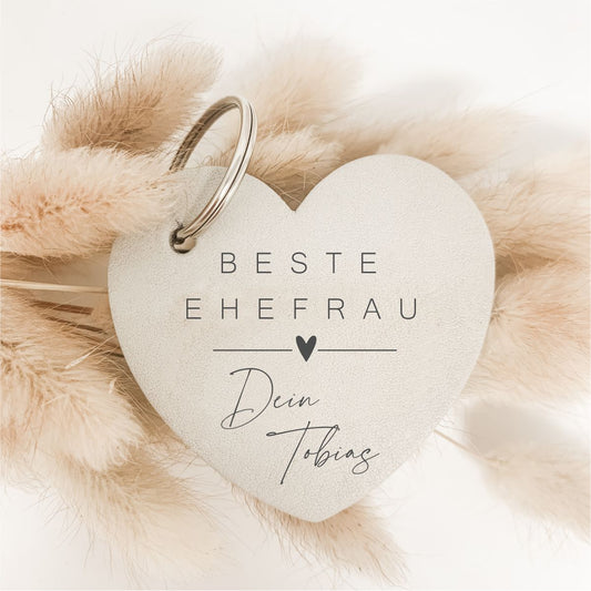 Schlüsselanhänger Leder Herz - beste Ehefrau mit Wunschtext