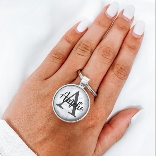 Schlüsselanhänger mit Glascabochon und Wunschtext marmor Optik