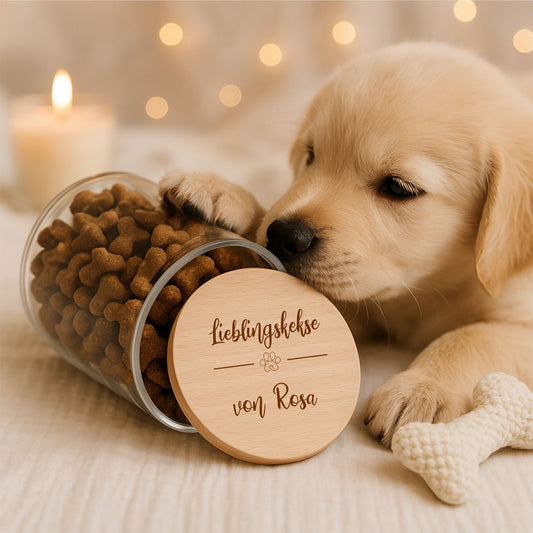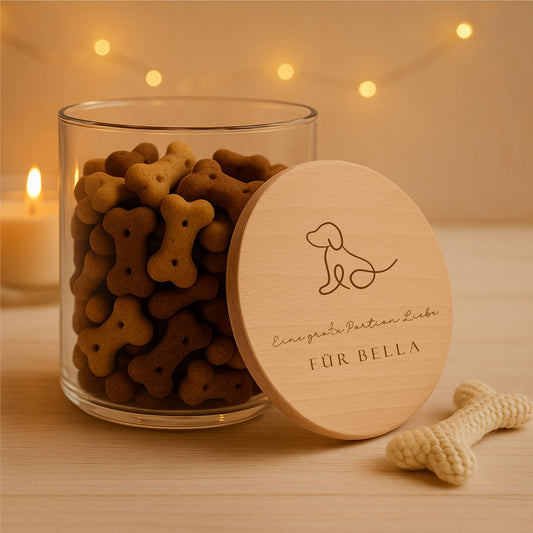 Leckerliglas Hund mit Gravur 530 ml– Vorratsglas mit Holzdeckel Hund & Wunschtext