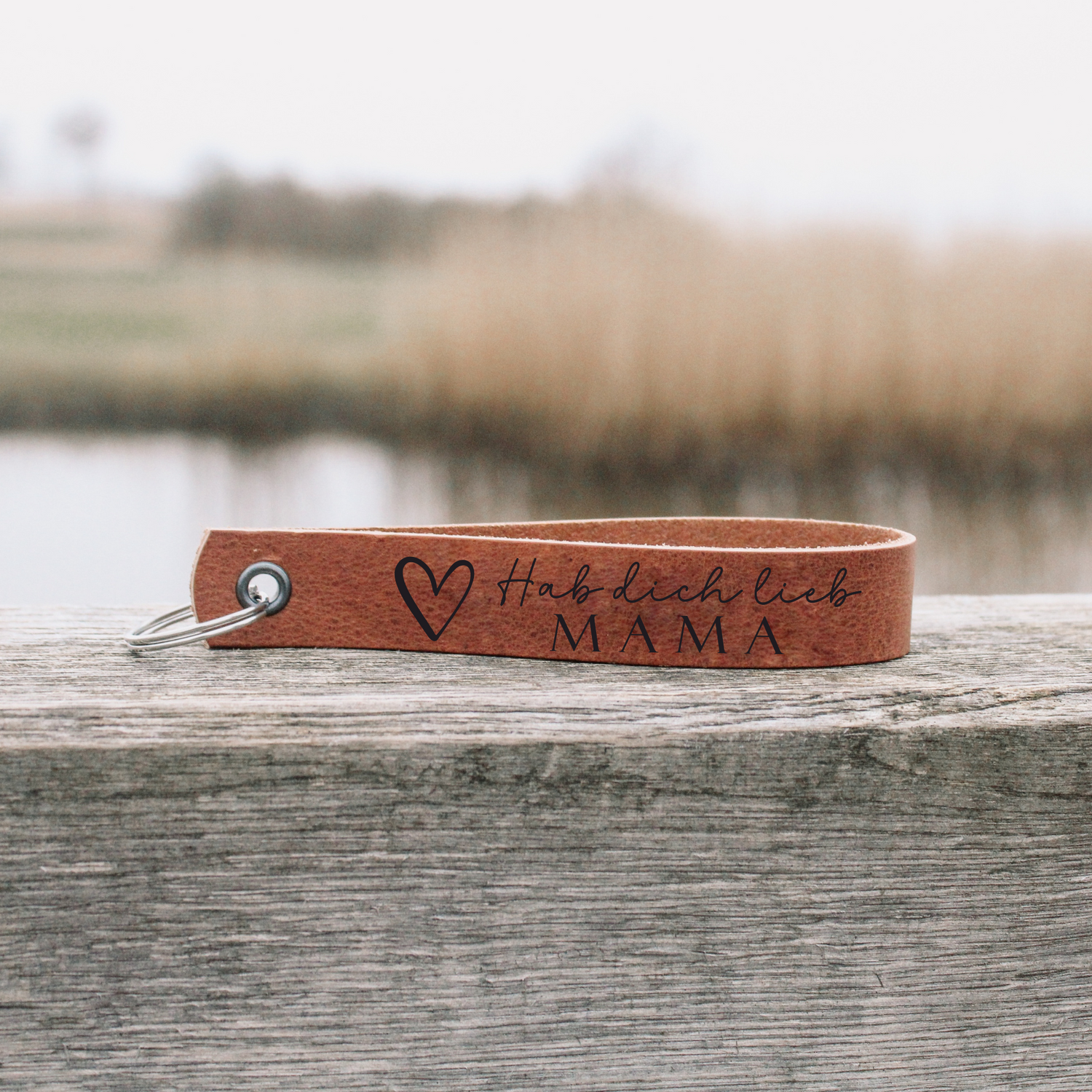 Leder Schlüsselanhänger schmal - Hab dich lieb Mama