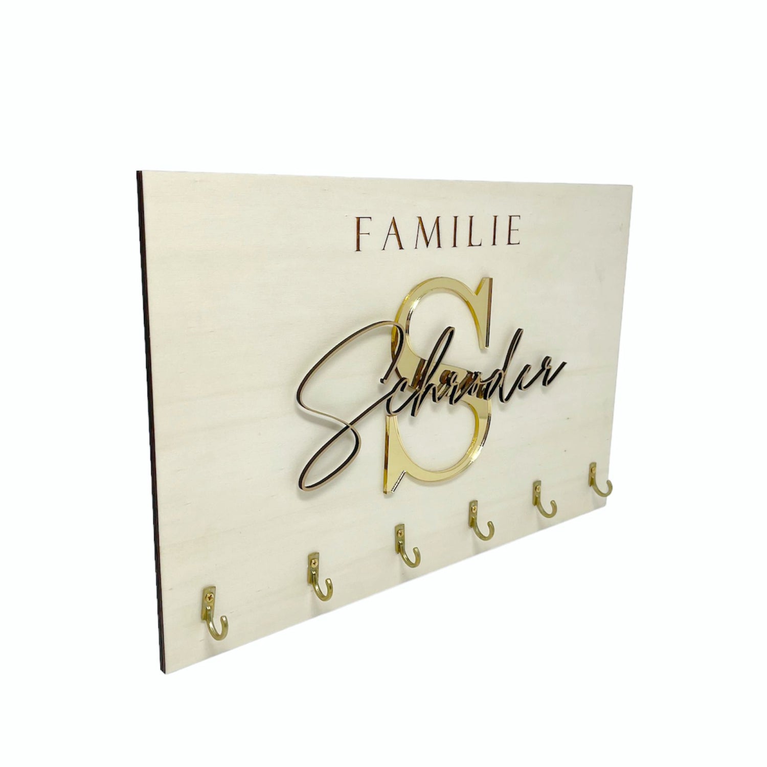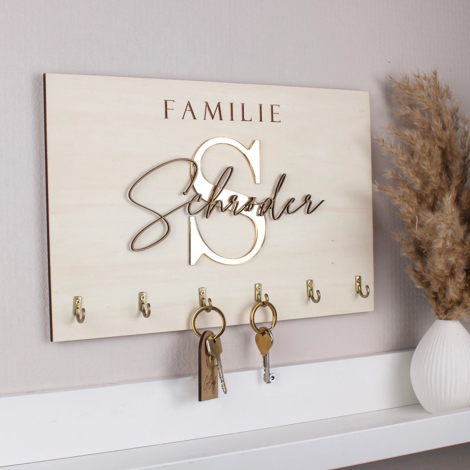Unser personalisiertes Schlüsselbrett ist eine ganz besondere Geschenkidee für dich oder deine Liebsten. Mit deinem persönlichen Wunschtext und dem goldenem Buchstaben machst du das Brett zu einem absoluten Hingucker in deinem Zuhause.