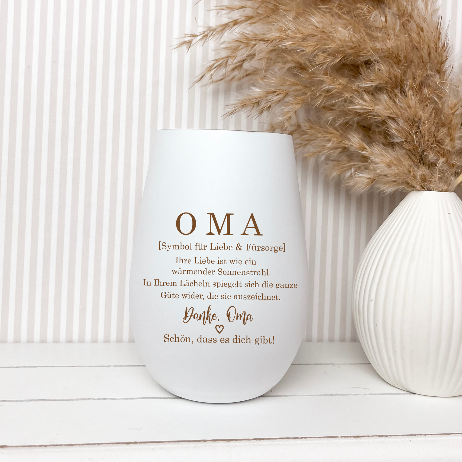 Das beschichtet Glasmaterial schafft eine zauberhafte Atmosphäre und bietet den idealen Hintergrund für Gravuren. Mit diesem besonderen Spruch bringst du deine Oma ganz bestimmt zum Strahlen.