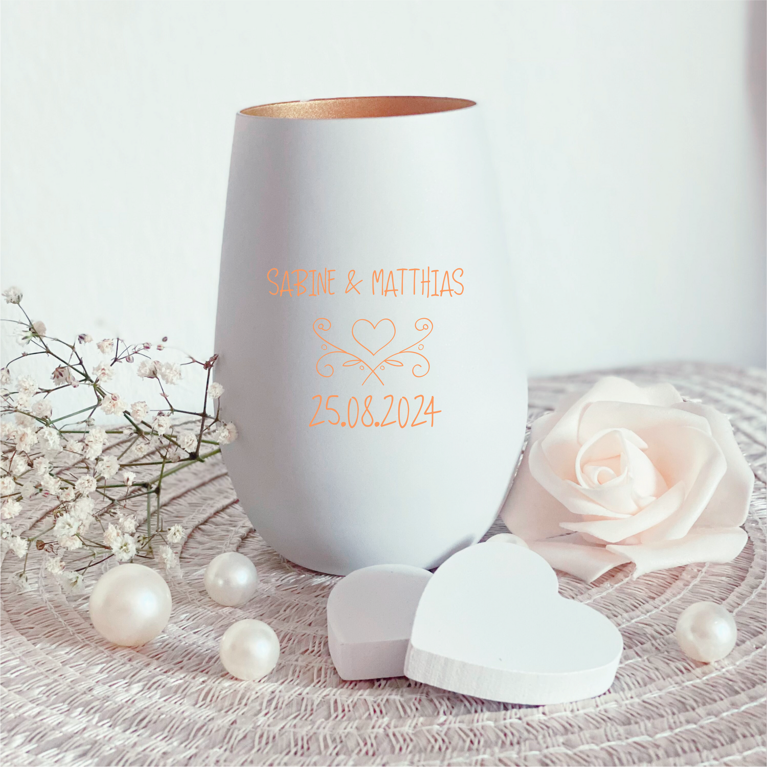 Das beschichtet Glasmaterial schafft eine zauberhafte Atmosphäre und bietet den idealen Hintergrund für Gravuren, mit deinem Wunschtext. Mit einem Namen, einem besonderen Datum oder einer herzlichen Botschaft wird jedes Windlicht zu einem maßgeschneiderten Kunstwerk, das Gefühle und Erinnerungen festhält.